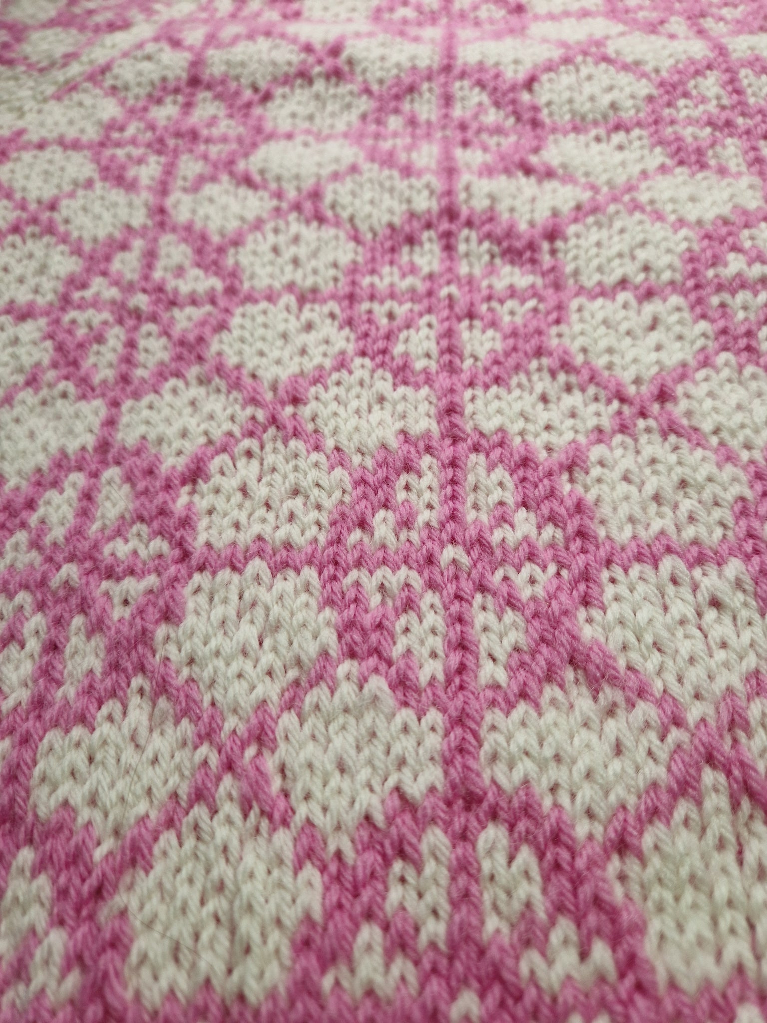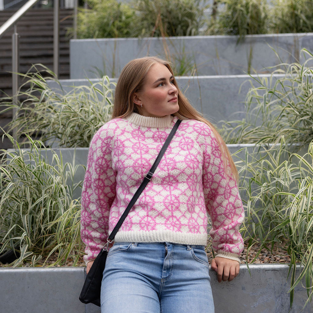 Kirjoneulekuvio on helposti omaksuttava, toistuva ja langanjuoksutkin vain muutaman silmukan pituisia. Tarvikepaketin ohje on kokoihin XS/S, M/L ja XL/XXL.